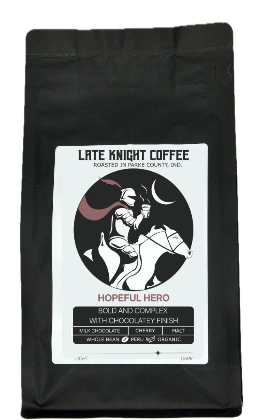 HOPEFUL HERO comes to us from a small organically run family farm, La Finca Esperanza (Farm of Hope) in the San Martin region of Peru. An interesting and complex coffee, we often tell people “It has a lot going on!” The combination of sweet milk chocolate and cherry is evident from the first sniff to the last sip, and the finish is lingering chocolatey malty goodness. This is our best selling coffee for drip, and we also like to recommend it to more adventurous espresso customers as a single shot.